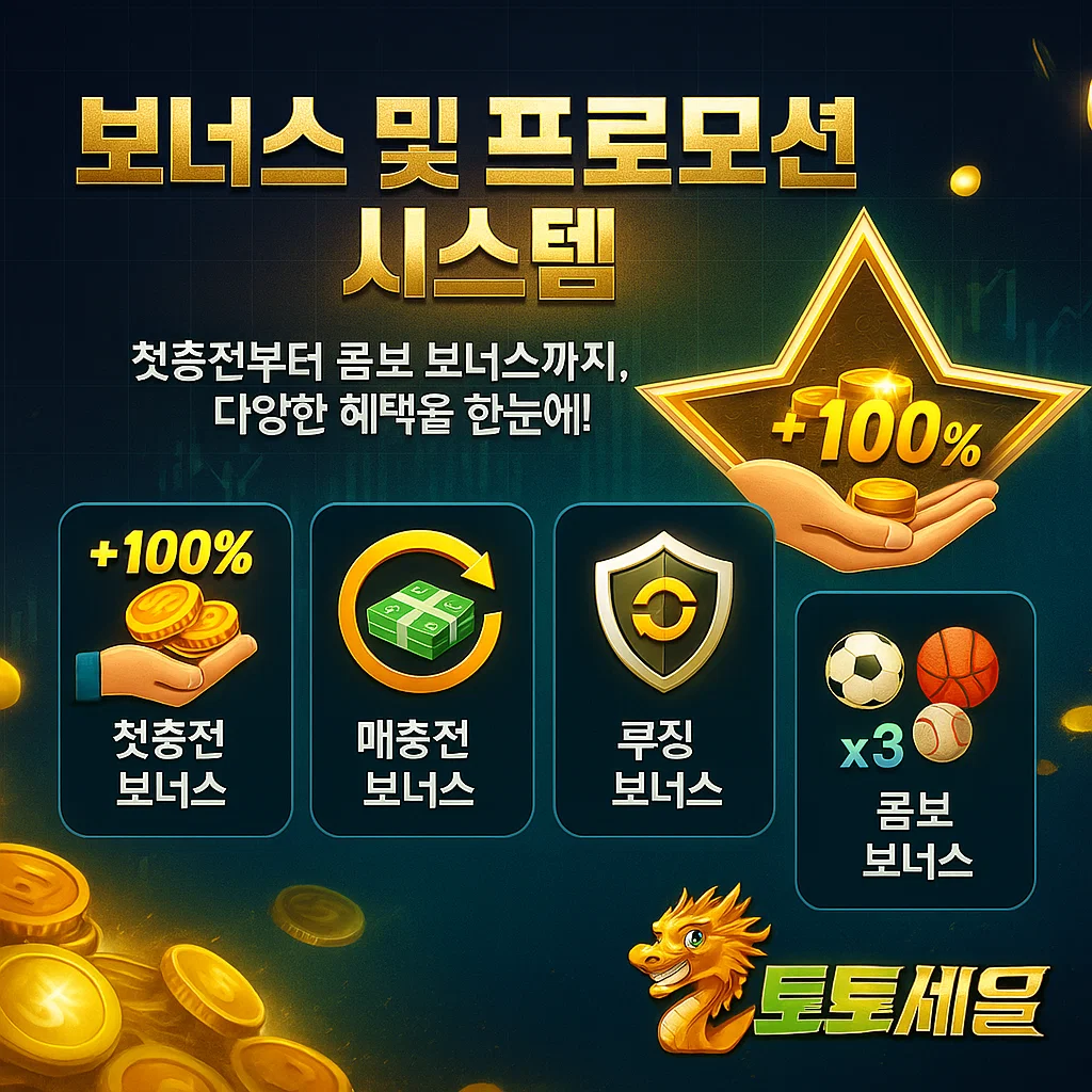 - 다양한 프로모션 혜택 – 지속적으로 제공되는 보너스와 이벤트로 추가 수익 기회를 얻고, 베팅 자금을 효율적으로 관리할 수 있습니다.