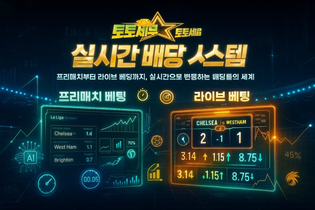 토토사이트의 핵심 기능은 실시간으로 변동하는 배당률을 제공하는 것입니다. 경기 시작 전 사전 배당부터 경기 중 라이브 배당까지, 다양한 베팅 옵션이 실시간으로 업데이트됩니다.