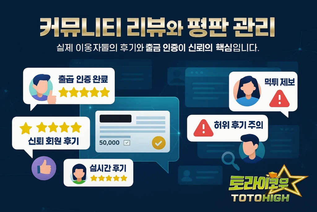 주요 토토 커뮤니티에서는 사이트별 이용 후기, 출금 인증, 먹튀 제보 등이 실시간으로 공유됩니다. 출금 속도, 고객센터 응대, 배당률, 보너스 조건 등 실질적인 정보를 얻을 수 있습니다.