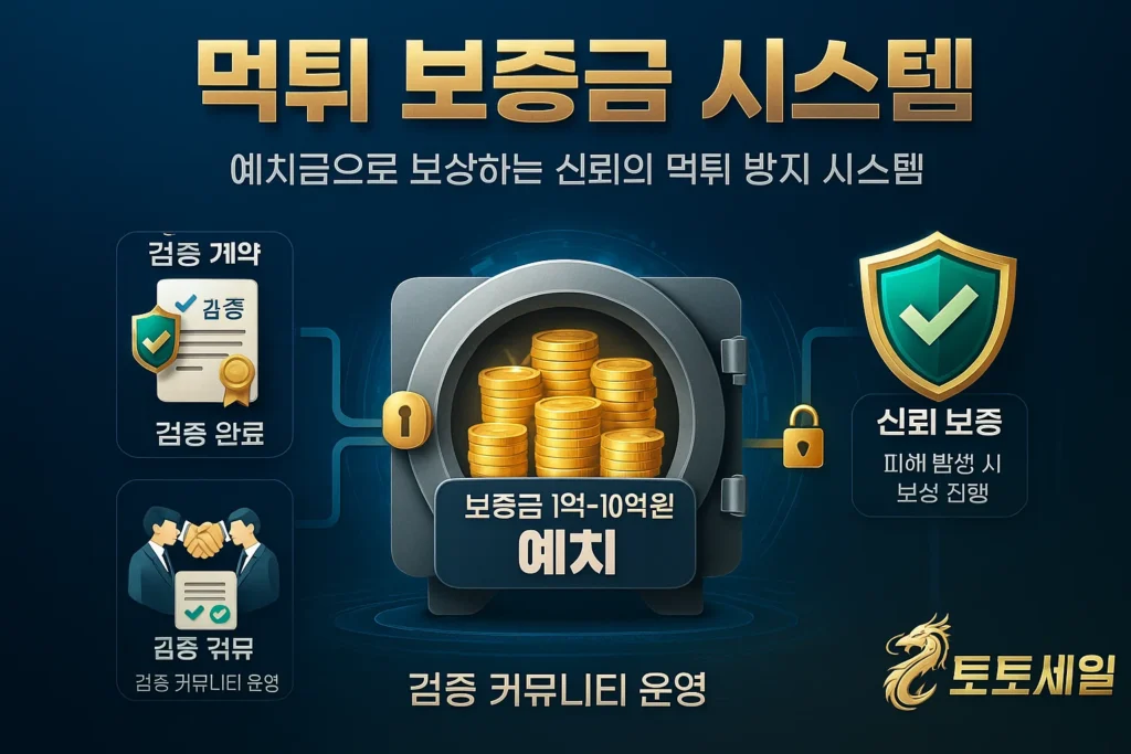 일부 검증 사이트들은 먹튀 보증금 시스템을 운영합니다. 토토사이트가 검증 업체에 일정 금액의 보증금을 예치하고, 만약 먹튀 사고가 발생하면 이 보증금으로 피해자들에게 보상하는 제도입니다.