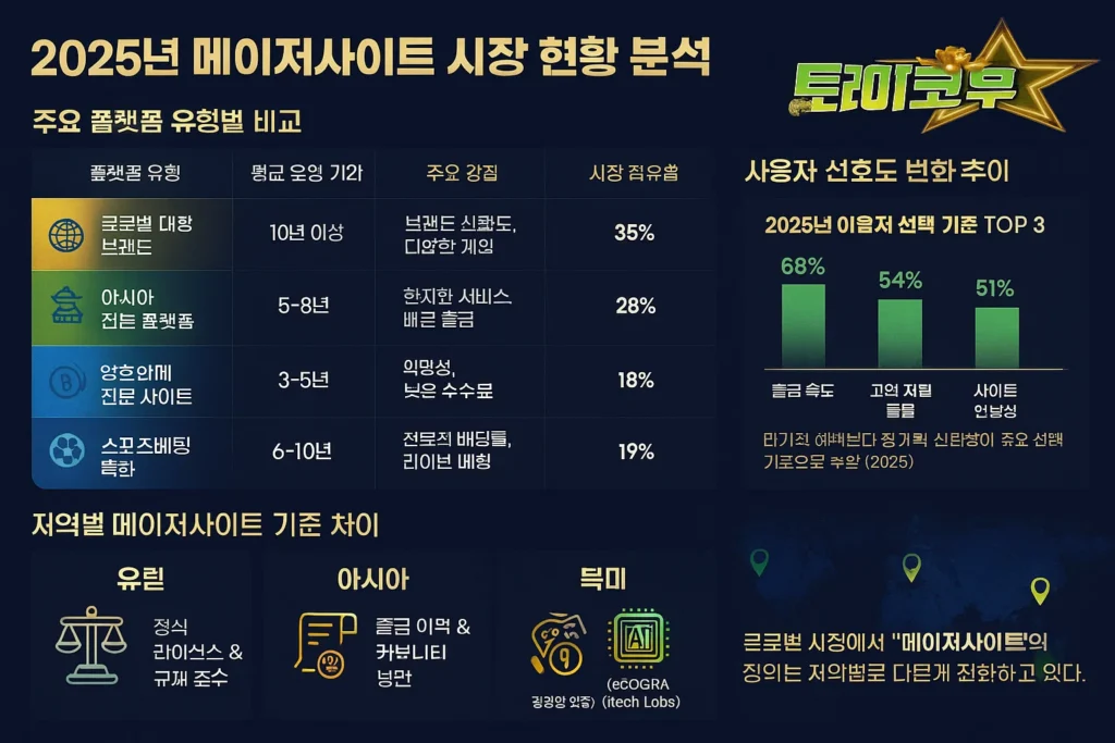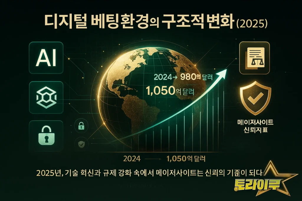 2025년 현재, 온라인 베팅 산업은 전례 없는 기술적 진화와 규제 강화의 교차점에 서 있다. 글로벌 온라인 도박 시장 규모는 2024년 기준 약 980억 달러를 기록했으며, 2025년에는 1,050억 달러를 넘어설 것으로 업계는 전망하고 있다. 이러한 급격한 성장 속에서 '메이저사이트'라는 개념은 단순한 마케팅 용어를 넘어 사용자 보호와 산업 건전성을 담보하는 핵심 지표로 자리매김했다.
