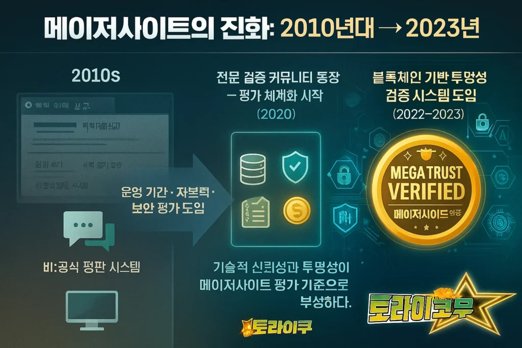 2020년대 들어서면서 전문 검증 커뮤니티가 등장하고, 메이저사이트의 판단 기준이 구체화되었다. 단순히 출금 이력만이 아니라 운영 기간, 자본력, 보안 시스템, 라이선스 보유 여부 등 다각적인 평가 지표가 도입되었다. 특히 2022년 이후 블록체인 기술을 활용한 투명성 검증이 시도되면서 기술적 신뢰도가 중요한 평가 요소로 부상했다.