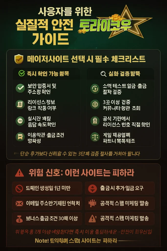 메이저사이트를 선택할 때는 다음의 실질적 확인 절차를 거치는 것이 권장된다.